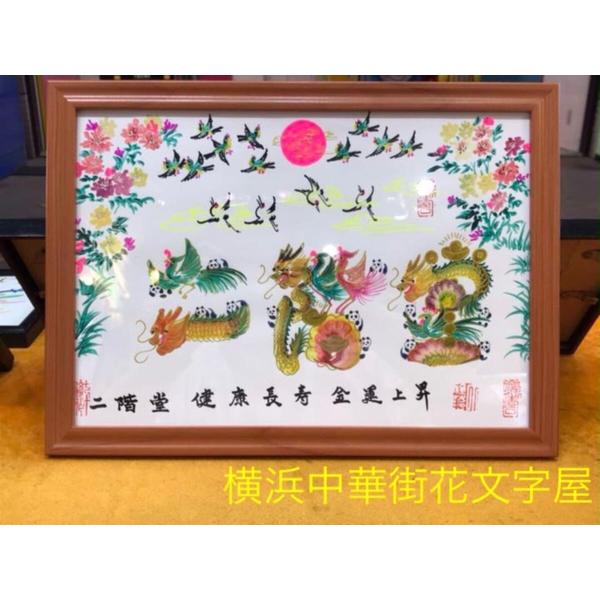 本日か翌日発送します 開運風水 花文字 4文字まで A4額付き 横浜中華街発送 金運上昇 健康長寿 商売繁盛 家族安泰 贈り物最適