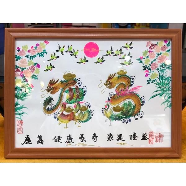 額付き開運風水花文字、お客様好きな文字を書きます、命名書 誕生日 結婚 開店 就職 米寿 新発売などに贈り物 プレゼント 中華街 お土産 最適最高