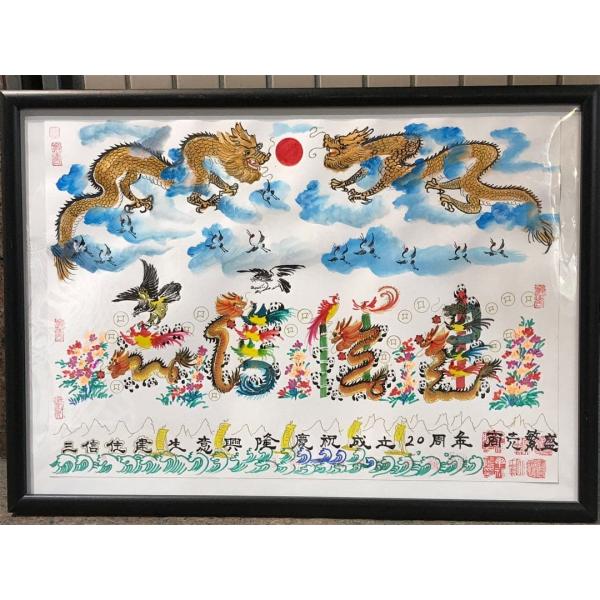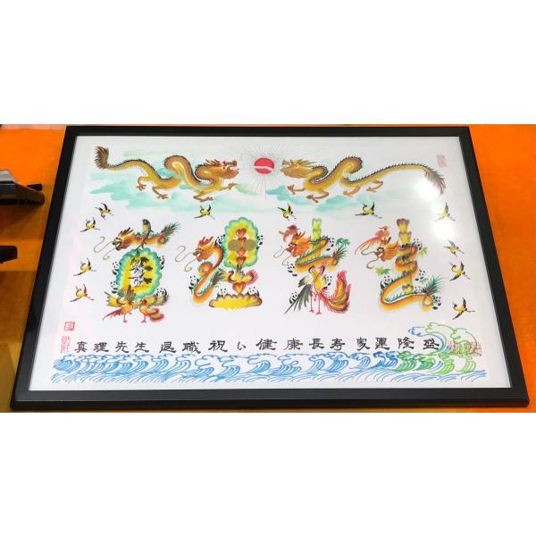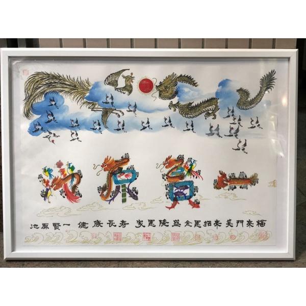 特大サイズ額縁445×620mm,龍鳳付き 高級工芸美術師作 開運風水花文字 名前書き 開運風水花文字 開運絵画 誕生日 米寿 還暦 記念日 贈り物に最適