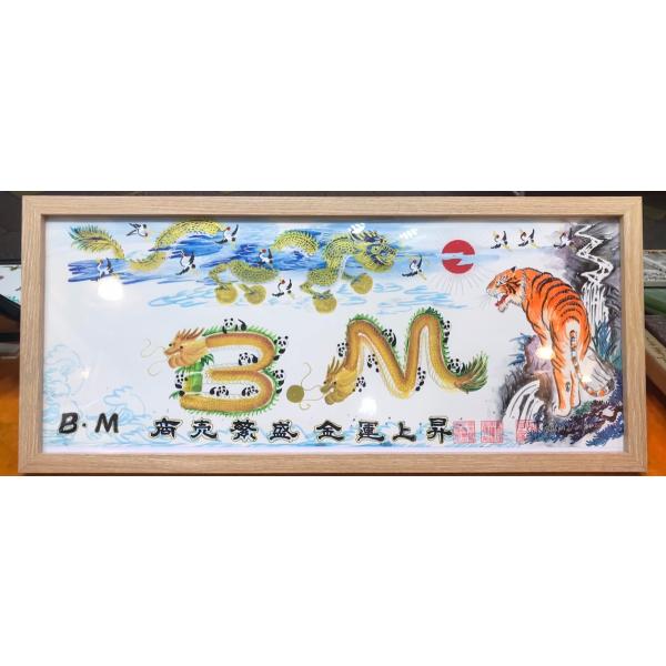 額付き開運風水花文字、お客様好きな文字を書きます、命名書 誕生日 結婚 開店 就職 米寿 新発売などに贈り物 プレゼント 中華街 お土産 最適最高