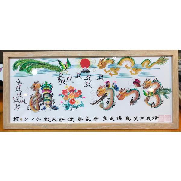 約50cmX22cm額付き 大 長寿祝い 還暦 古希 喜寿 傘寿 米寿 卒寿 感謝 退職 開運絵画 開運風水花文字 お客様名前を書き 誕生日 結婚 出産 贈り物 最適