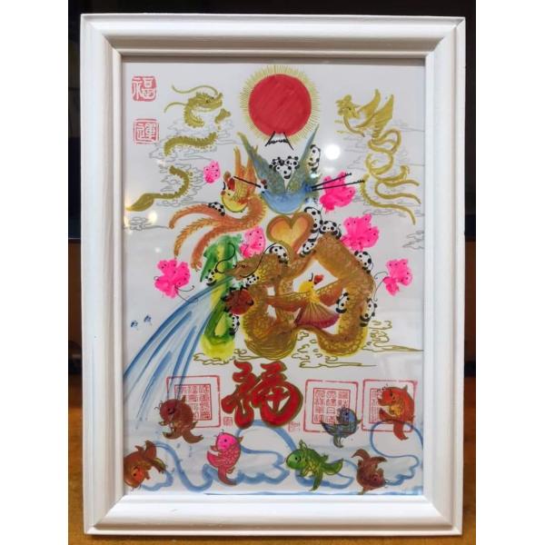 2Lサイズ額縁付き 萬福花文字 花鳥字 花鳥文字 花鳥画 龍鳳字 龍鳳文字 吉祥花文字 開運花文字 お客樣の名前を書く 直筆花鳥字
