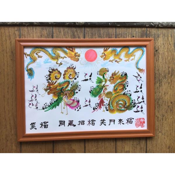 額付き開運風水花文字、お客様好きな文字を書きます、命名書 誕生日 結婚 開店 就職 米寿 新発売などに贈り物 プレゼント 中華街 お土産 最適最高