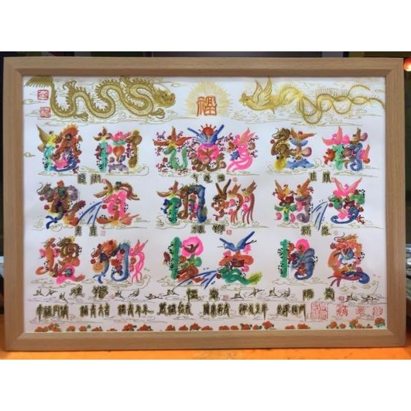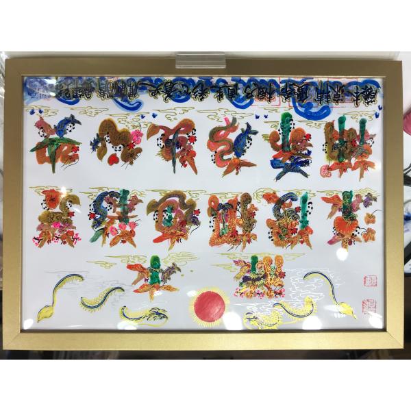 12文字Ok A4サイズ額付き 開運風水花文字 名前を書き 家族 米寿 喜寿 感謝 命名 開運絵画