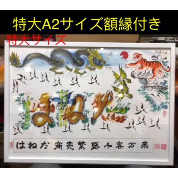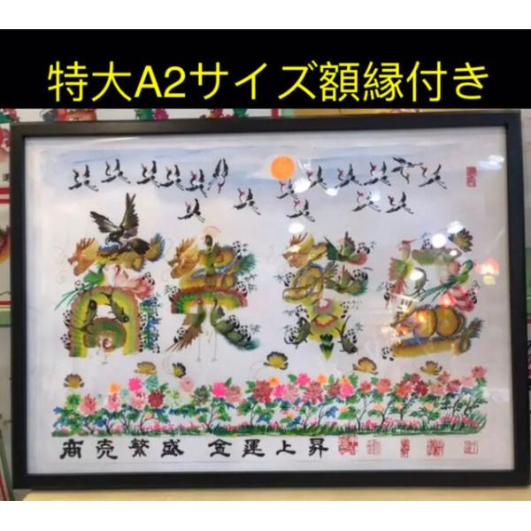 特大A2サイズ額縁付き、開運風水花文字 開運絵画 名前風水絵 誕生日 米寿 還暦 喜寿 命名書 魔除 御守り 結婚記念日 商売繁盛 千客萬來