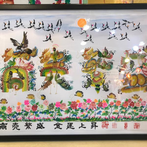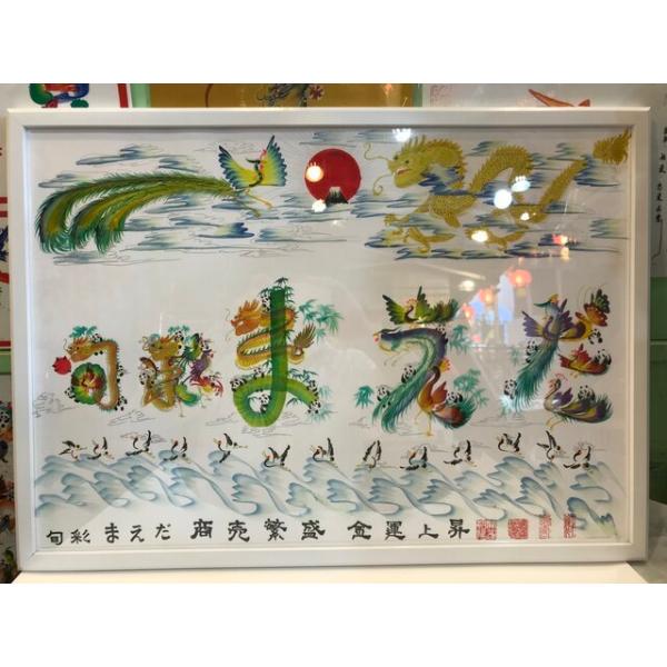 額付き開運風水花文字、お客様好きな文字を書きます、命名書 誕生日 結婚 開店 就職 米寿 新発売などに贈り物 プレゼント 中華街 お土産 最適最高