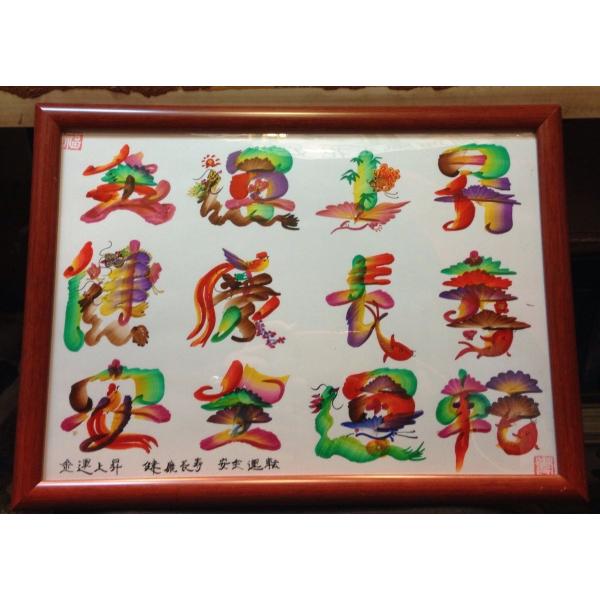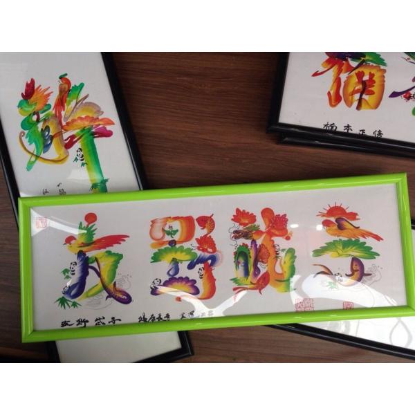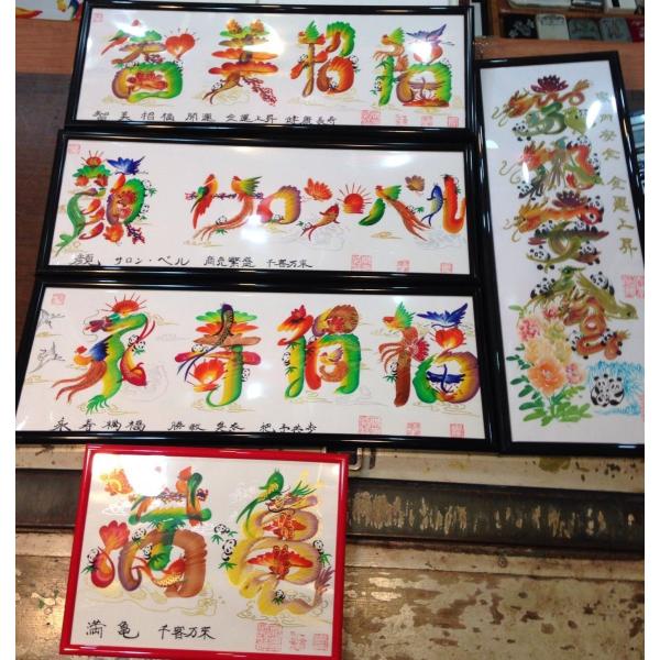 額付き開運風水花文字、お客様好きな文字を書きます、命名書 誕生日 結婚 開店 就職 米寿 新発売などに贈り物 プレゼント 中華街 お土産 最適最高