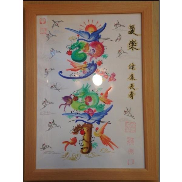 額付き開運風水花文字、お客様好きな文字を書きます、命名書 誕生日 結婚 開店 就職 米寿 新発売などに贈り物 プレゼント 中華街 お土産 最適最高