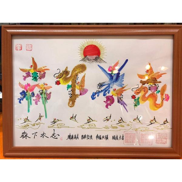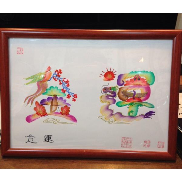 額付き開運風水花文字、お客様好きな文字を書きます、命名書 誕生日 結婚 開店 就職 米寿 新発売などに贈り物 プレゼント 中華街 お土産 最適最高