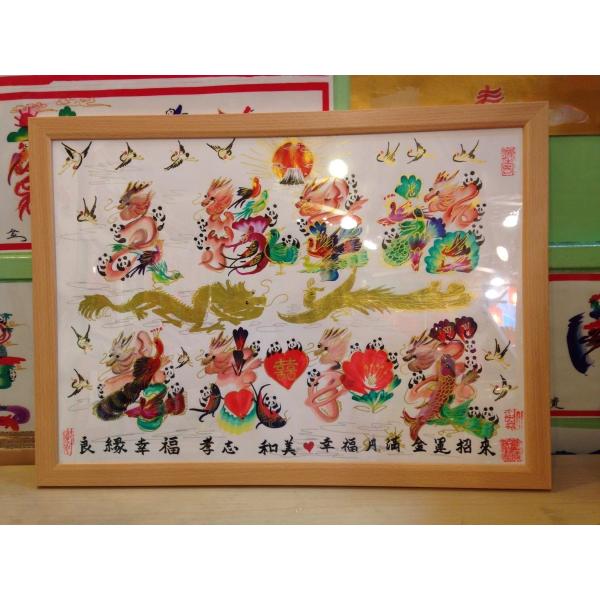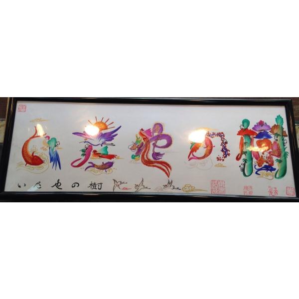 額付き開運風水花文字、お客様好きな文字を書きます、命名書 誕生日 結婚 開店 就職 米寿 新発売などに贈り物 プレゼント 中華街 お土産 最適最高