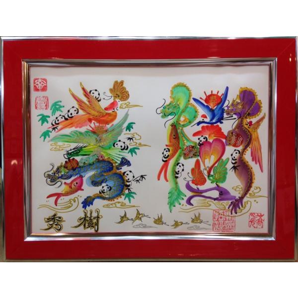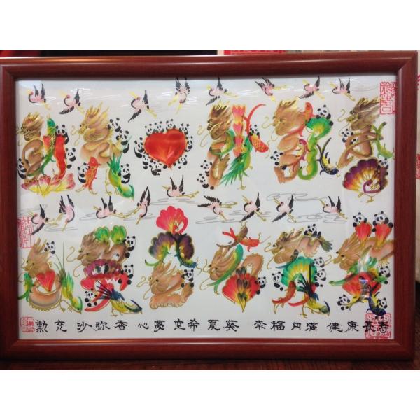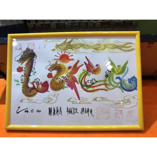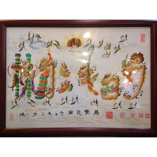 額付き開運風水花文字、お客様好きな文字を書きます、命名書 誕生日 結婚 開店 就職 米寿 新発売などに贈り物 プレゼント 中華街 お土産 最適最高