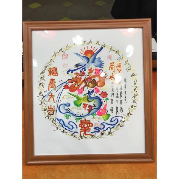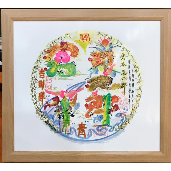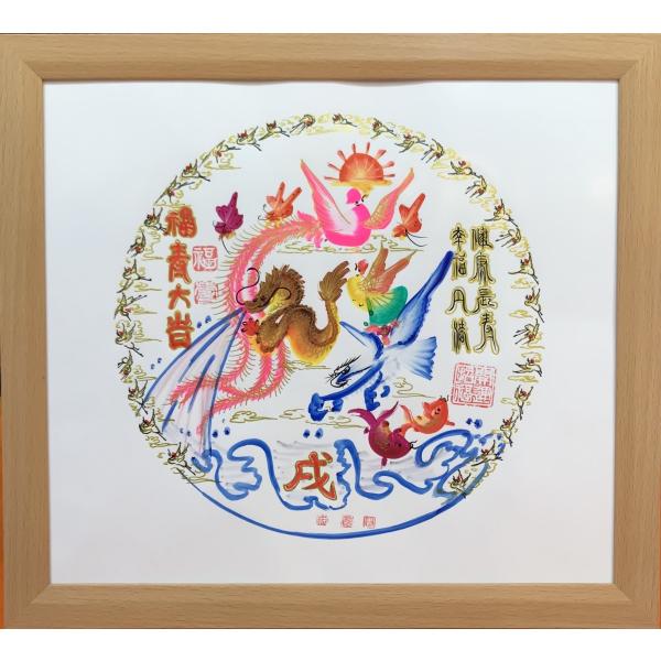 開運風水花文字、お客様の名前を書きます、丸円タイプ額付き、誕生日 命名書 萬福 入学 試験 面接 米寿贈り物最適、
