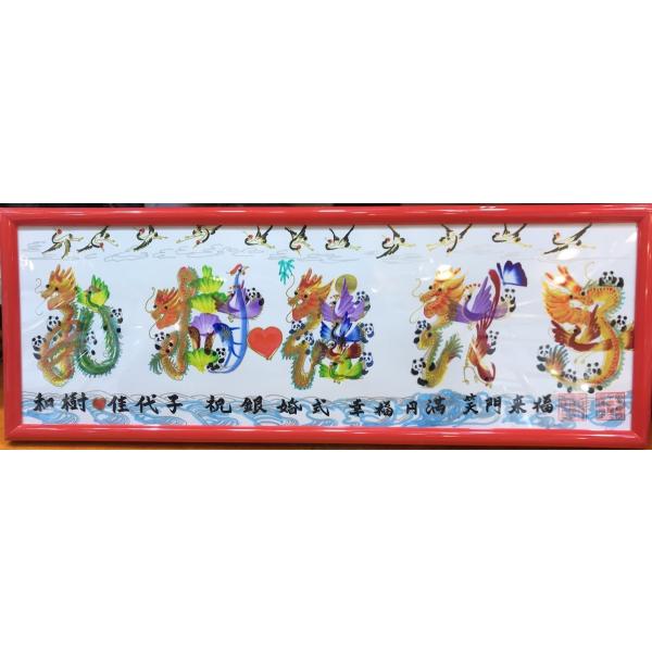 額付き開運風水花文字、お客様好きな文字を書きます、命名書 誕生日 結婚 開店 就職 米寿 新発売などに贈り物 プレゼント 中華街 お土産 最適最高