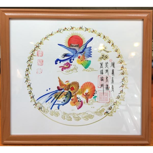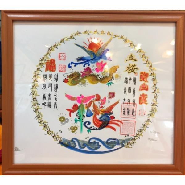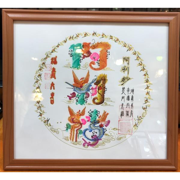 額付き開運風水花文字、お客様好きな文字を書きます、命名書 誕生日 結婚 開店 就職 米寿 新発売などに贈り物 プレゼント 中華街 お土産 最適最高