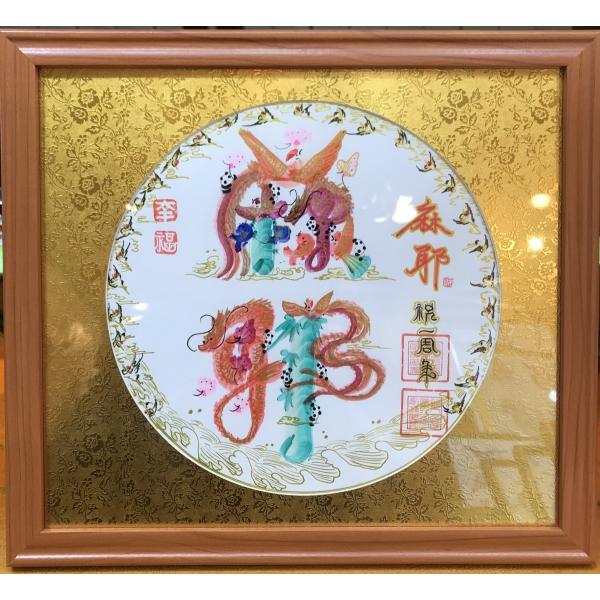 額付き開運風水花文字、お客様好きな文字を書きます、命名書 誕生日 結婚 開店 就職 米寿 新発売などに贈り物 プレゼント 中華街 お土産 最適最高
