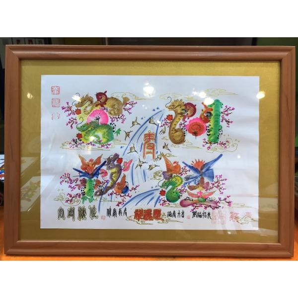 額付き開運風水花文字、お客様好きな文字を書きます、命名書 誕生日 結婚 開店 就職 米寿 新発売などに贈り物 プレゼント 中華街 お土産 最適最高