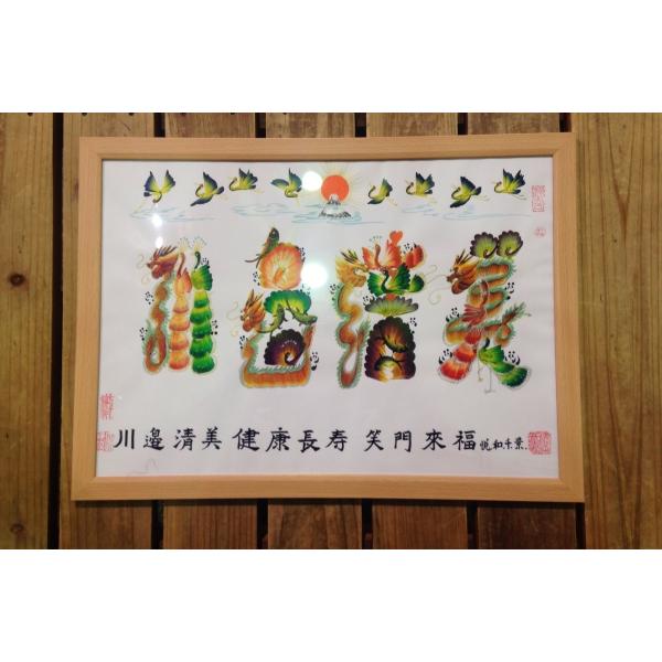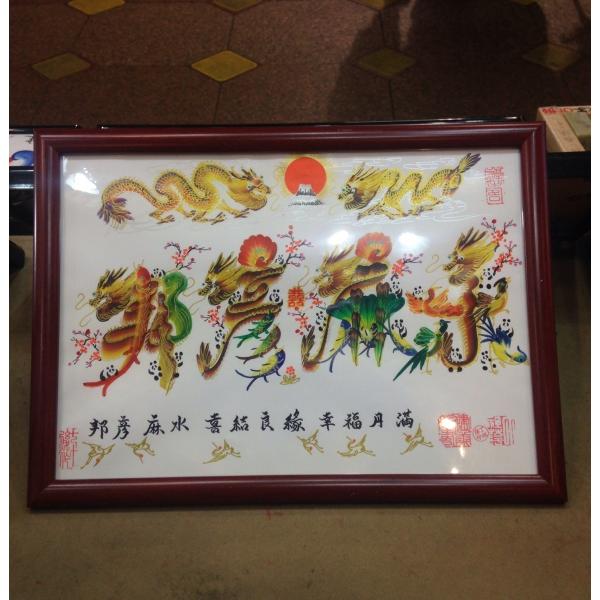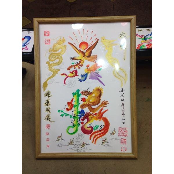 額付き開運風水花文字、お客様好きな文字を書きます、命名書 誕生日 結婚 開店 就職 米寿 新発売などに贈り物 プレゼント 中華街 お土産 最適最高