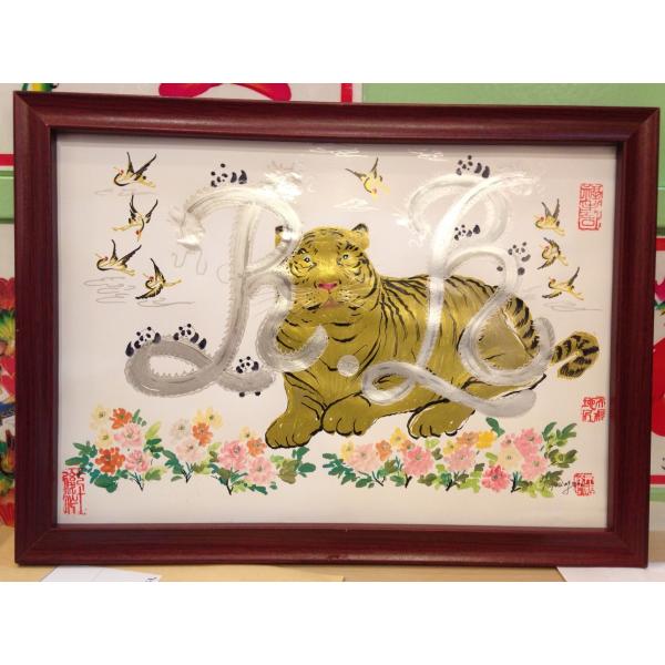 額付き開運風水花文字、お客様好きな文字を書きます、命名書 誕生日 結婚 開店 就職 米寿 新発売などに贈り物 プレゼント 中華街 お土産 最適最高