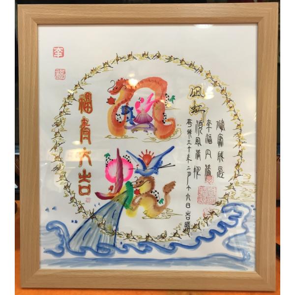 額付き開運風水花文字、お客様好きな文字を書きます、命名書 誕生日 結婚 開店 就職 米寿 新発売などに贈り物 プレゼント 中華街 お土産 最適最高