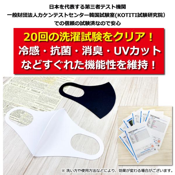 繰り返し洗って使える 冷感・抗菌マスク 春夏用 5枚セット ※訳あり「使用期限が2025年7月までの為、数量限定特別価格にて大処分」高機能 20回の洗濯試験クリア 冷感 抗菌 消臭 UVカット など優れた機能性を維持する ひんやり爽やか冷感マスク 涼しく長時間でも 蒸れにくい 第三者テスト機関 一般財団法人カケンテストセンター 韓国試験室KOTITI試験研究院での試験済 キシリトール成分により、長時間の使用でもひんやり冷感と清涼感 抗菌 黄色ブドウ球菌と肺炎菌に抗菌テスト99.99%の高い抗菌性 消臭効果 銀(Ag) 抹茶成分配合 高い消臭効果 天然成分 キトサン 抹茶 銀など 天然成分配合 人体に無害。ホルムアルデヒドなど 人体に有害な物質も未検出 天然キトサン成分 アトピー アレルギーなどの皮膚疾患予防にも UPF50+ 強い日差しや紫外線からUVカット ポリウレタン入り 優れた伸縮性 長時間の着用でも耳が痛くなりにくい 抗菌効果や消臭効果 繰り返し使える 冷感 抗菌マスク 送料無料 洗えるマスク ひんやり PM2.5 伸縮性 春 夏用 医療 大人用 マスク 立体マスク 冷感マスク フリーサイズ 立体 男女兼用 接触冷感 花粉 ウイルス 抗菌 UVカット 涼しい 夏用 抗菌マスク