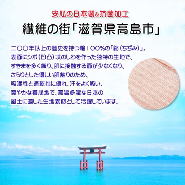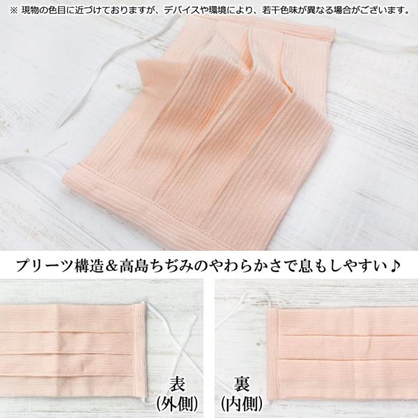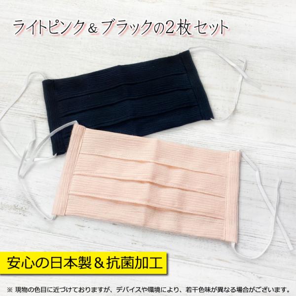 【高島ちぢみ】マスク。涼やかに使え、肌触りがいい綿100%マスク 繰り返し洗って使える「高島ちぢみマスク」夏用 日本製 2枚セットです♪安心の日本製&抗菌加工。二〇〇年以上の歴史を持つ綿100%の「縮(ちぢみ)」。表面にシボ(凹凸)状のしわを作った独特の生地で、すきまを多く織り、肌に接触する面が少なくなり、さらりとした優しい肌触りのため、吸湿性と速乾性に優れ、汗をよく吸い、爽やかな着心地で、高温多湿な日本の風土に適した生地素材として活躍しています。プリーツ型マスクで2重構造、日本国内製造で、抗菌加工も施してありますので安心してご利用頂けます。高島ちぢみ最大の特徴がその織り方。シボ(凸凹)が表面に織られているため、肌に接触する面が少なくなり、暑い夏でもべとつかずに快適にマスクをして頂けます。やわらかい織り方なので、ゴワゴワせずに長時間の着用でもらくらく。耳部分のゴムも平ゴムを使用、ご自身で長さ調整出来るので、長時間でも耳が痛くなりにくいです。◆サイズ:男女兼用フリーサイズ ヨコ約20cmタテ約10cm※測り方や個体差により若干の違いがございます。◆カラー:ライトピンク ブラック◆数量:2枚◆素材:綿100%