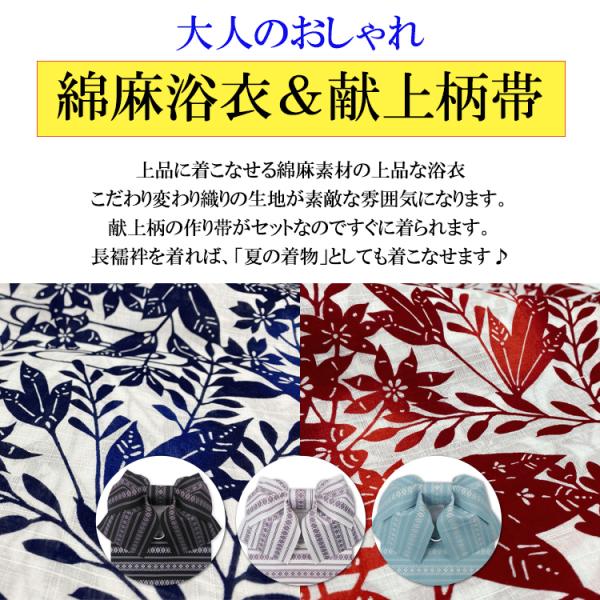 綿麻 浴衣 作り帯 2点 セット 送料無料 レディース 浴衣セット