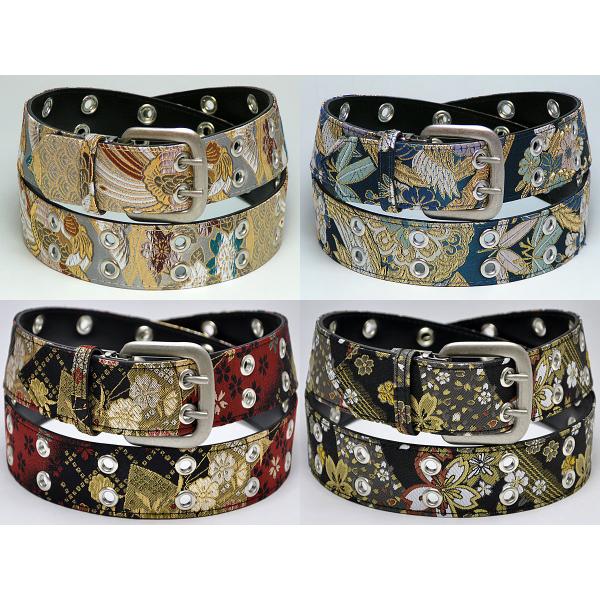 和柄ベルト(金襴) メンズレディース おしゃれカジュアル ジーンズ用デニムに合うダブルピンバックル 柄多数きんらん 長さ調整可能 日本製COCOLUCKココラック