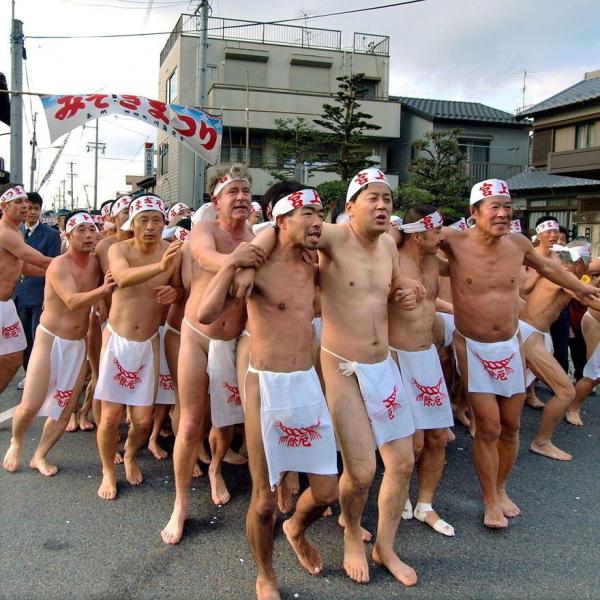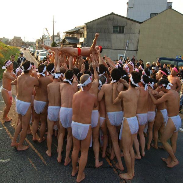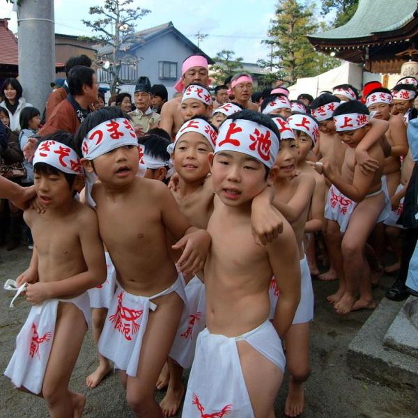 大正3年(1914)以後、それまでの全裸から褌を用いるようになり、祭元(裸の会場)は禰宜宅の民家が使われ、祭元に限って女人禁制とされてきました。