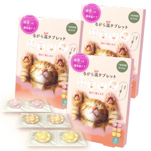 ながら温(HOT)タブレット 6P《貼るだけタブレット 6個入×3箱 (個包装)ご使用時間 約30分 》 温めて整える 温活 ホット リラックス ねこ 猫 ほんやら堂