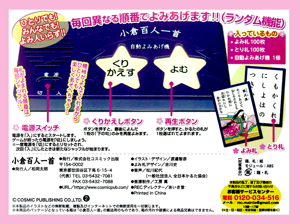 ラッピング無料 小倉百人一首 よみ人いらず ひとりでできる 自動 よみあげ機付き かるた 百人一首 ゲーム おもちゃ プレゼント お正月 ※電池セット済み