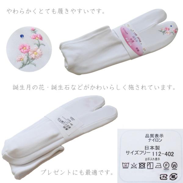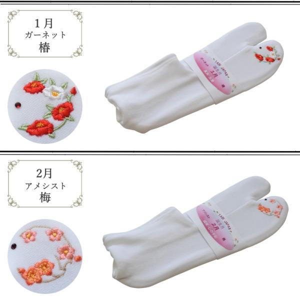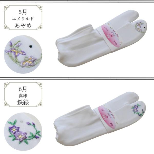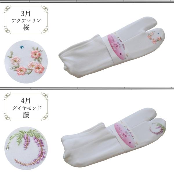 誕生花と誕生石のモチーフがポイントの上品な白足袋ソックス。