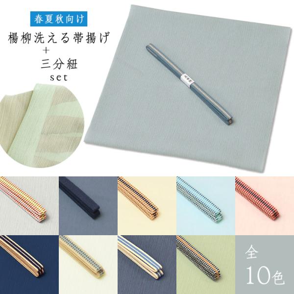 ★選べる10色 × 2サイズ★春夏秋向け 日本製 東レ 洗える 楊柳生地 紗 帯揚げ + 国産 真田 三分紐 真田紐【 2点セット 】 真田紐 メール便可能 oz-nt-ss01