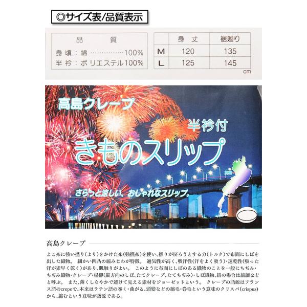 絽半衿付き 高島クレープ 浴衣&着物スリップ M/L 筒袖タイプ 高島縮み肌着 肌襦袢 和装スリップ 夏用 wasou-36 ktk