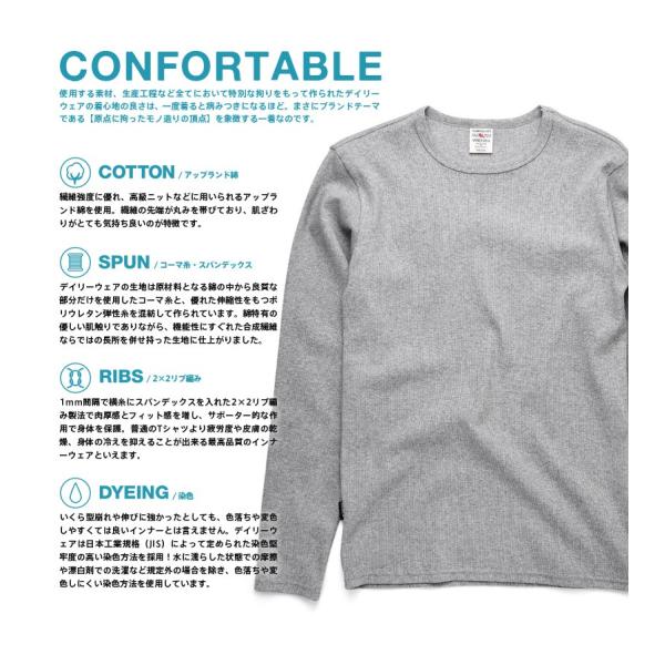 生地には耐久性に優れ洗濯しても伸びにくいリブ素材を採用し、「デイリーウェア」の名に恥じないタフさを実現!単体ではもちろんの事、インナーにも使えるユーティリティーウェアとして何枚あっても困らない究極の定番アイテムです。