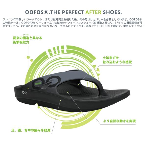 ランニングや激しいワークアウト、または数時間立ち続けた後、その足はリカバリーを必要としています。OOFOSの特殊ソール、OOfoam(ウーフォーム)は従来のパフォーマンスシューズの構造と異なり、37%もの衝撃吸収が可能。疲れた足をしっかりリカバリーしてくれます。