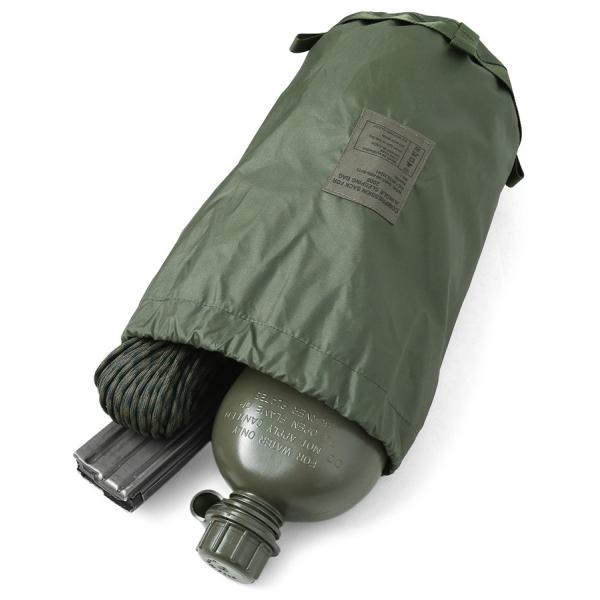 イギリス軍でスリーピングバッグを圧縮して収納するバッグとして使用されていましたが、スリーピングバッグやシュラフ、ポンチョライナーなどの収納に限らず、ちょっとしたものを収納するのに便利なバッグとしても活躍します。