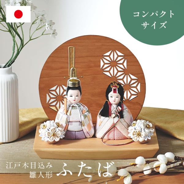 雛人形 木製 コンパクト おしゃれ 女の子 ケース飾り ひな人形 かわいい ミニ 国産 親王飾り 衝立 台座 木目込雛人形「ふたば」3点セット 5色対応
