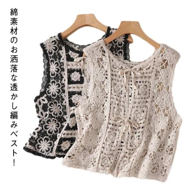 クロシェ編み プルオーバー ベスト 綿 レディース 透かし編み クロシェ編み サマーベスト トップス 春夏 おしゃれ レイヤード ニットベスト 通勤