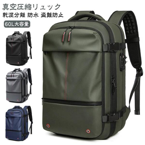 ビジネスリュック メンズ 大容量 拡張 防水 盗難防止 圧縮バックパック 60L 真空圧縮対応 PC収納可 リュック 多機能 乾湿分離 おしゃれ 高級