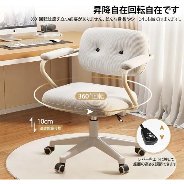 オフィスチェア デスクチェア 可愛い ホワイト 人間工学 座面昇降 360度回転 事務椅子 ワークチェア 勉強 在宅勤務 静音キャスター 椅子 パソコンチェア