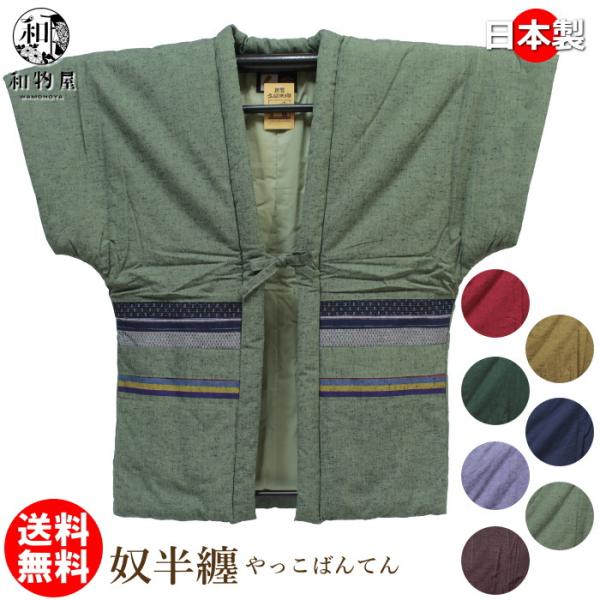 はんてん 袖なし 半纏 メンズ レディース 手作り 日本製 男性 女性 どてら ちゃんちゃんこ 久留米 黄色 エンジ 奴半天 半袖 綿入り mens レディス ladys 和物屋