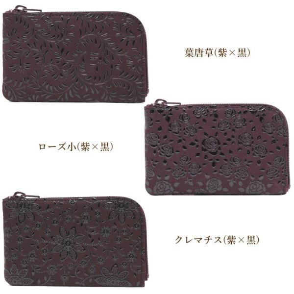 【爆買】印伝 小銭入れ 財布 印傳屋 コインケース 1001 紫×黒 レディース L字ファスナー 和柄 日本製 本革 和小物 小さい
