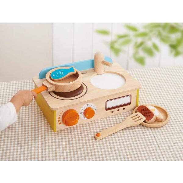 ●「フライパンで調理⇒お皿へ盛り付け⇒シンクでお皿洗い ⇒ お片づけ」と料理の流れを遊びながら学べます。