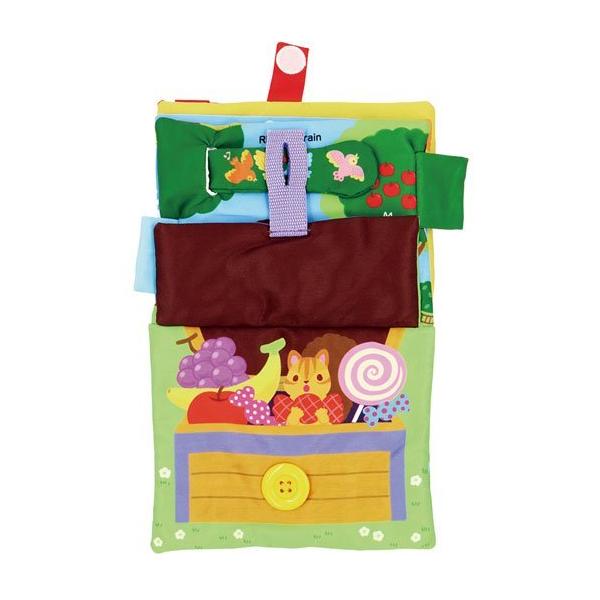 ●リボン結び、ジッパーの開閉、ボタンがけの他にも、数字カウントや形あそび・子どもが大好きなミラーなど、しかけが盛りだくさんの布絵本です。