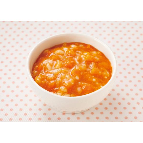 やわらかく仕上げた鶏肉、野菜と一緒に炊きあげたチキンライスです。 7ヶ月頃からの赤ちゃんに。常温でそのまま召し上がれます。