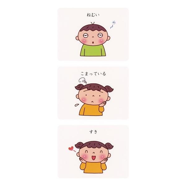 視覚的に行動意味伝わる絵カード。達成感・自信育む裏表絵付き。