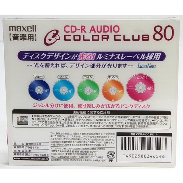 【デッドストック品】CD-R Audio 80 音楽用 光る!ルミナスレーベル マクセル maxell CDRA80C.PK1P ピンク