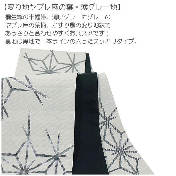 桐生織半幅帯【変り地ヤブレ麻の葉・グレー地】桐生織・おしゃれ帯・半幅帯・浴衣帯・ゆかた帯・小袋帯・変わり織