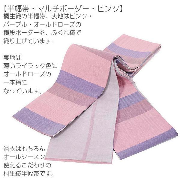 桐生織半幅帯【マルチボーダー・ピンク】おしゃれ帯・半幅帯・浴衣帯・ゆかた帯・小袋帯・花火大会・夏まつり・夕涼み・お祭り