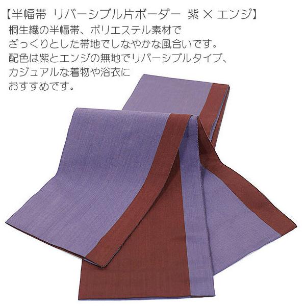 桐生織半幅帯 リバーシブル片ボーダー 紫×エンジ おしゃれ帯 半幅帯 浴衣帯 ゆかた帯 小袋帯 花火大会 夏まつり 夕涼み お祭り カジュアル 袴下帯 卒業式 袴